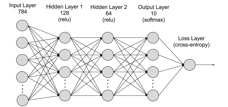 Below is a visualization of the architecture of a deep learning model classifying image objects into numbers.