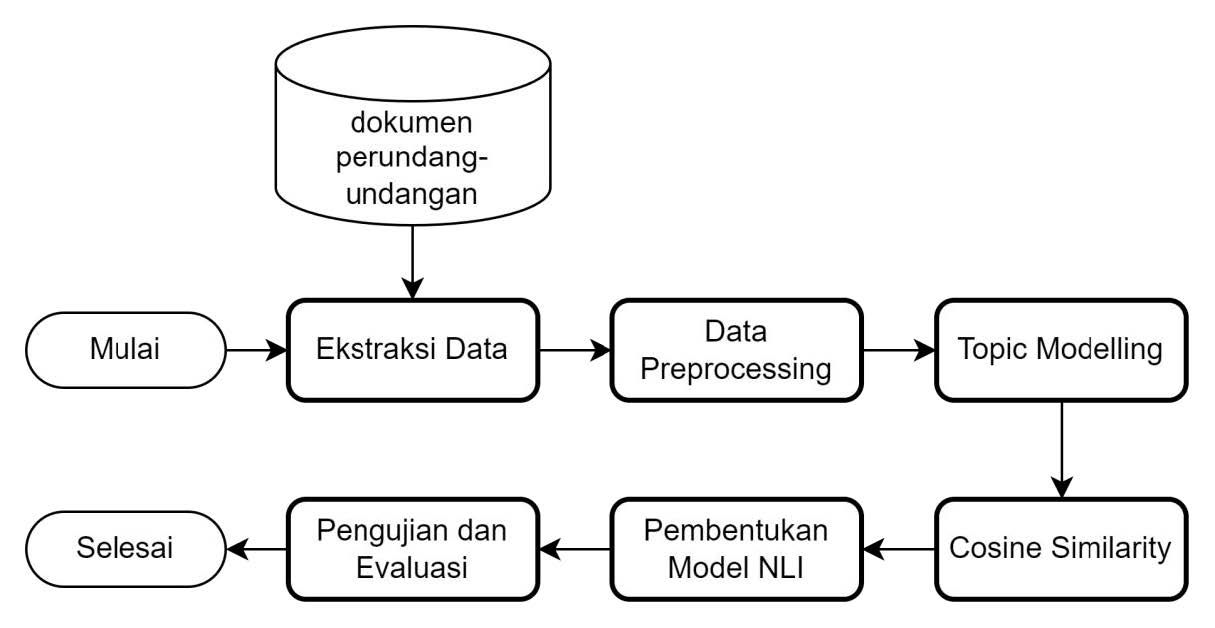 Therefore, digitization plays a crucial role in improving the existing system. Artificial Intelligence (AI), as one of the approaches used in digitization, has been widely implemented and proven effective in solving existing problems. The application of AI in problem-solving allows for effective and efficient resolution due to the automation processes carried out by computers and with a high level of accuracy. Based on this foundation, this research proposes the application of AI to address the issue of inconsistency in national legal regulations.